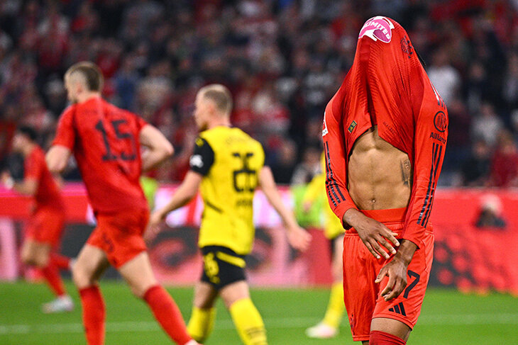 Кстати, Байер забил. «Бавария» сыграла вничью 2:2 с «Дортмундом», а доволен «Байер». Действующие чемпионы не осилили «Унион» (0:0), но остались в гонке за пять игр до конца: отстают на шесть очков, хотя могли на восемь. Повезло, что у «Боруссии» есть свой Байер. И Вальдемар Антон. «Бавария» не может победить «Дортмунд» уже три матча «Дортмунд» не в форме: вне зоны еврокубков, рискует не пролезть даже в Лигу Европы. У «Баварии» сплошные потери, ключевая – травма звезды Джамала Мусиалы. Вместо него доигрывает Томас Мюллер, возрастной и уже не такой техничный. Мусиалы не хватает, но главная сложности «Баварии» – с реализацией: снова не использовали уйму моментов и вдруг получили в свои ворота. На 50-й минуте форвард Максимилиан Байер выпрыгнул у штанги и ударил головой – мяч пролетел между ног Йонаса Урбига. Немец играет, пока восстанавливается Мануэль Нойер. «Боруссия» совсем закрылась, но «Бавария» вдруг исправилась и закинула два гола подряд. Сначала Рафаэл Геррейру на 65-й минуте, а с