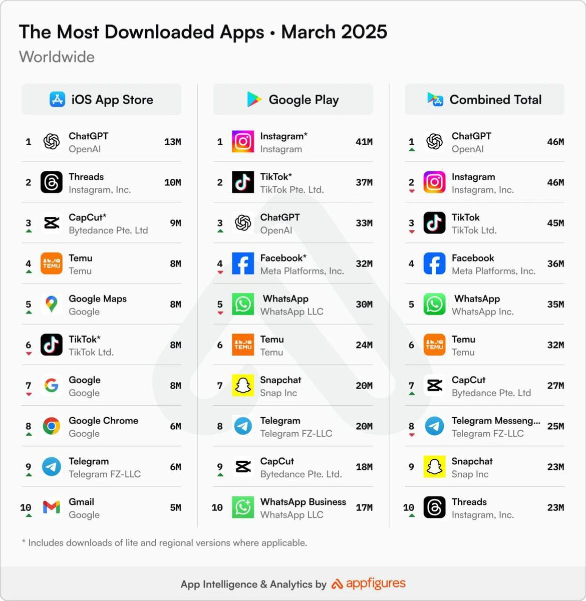 ChatGPT самое популярное приложение в мире, которое обошло все крупнейшие соцсети. 46 млн. установок только за март. Делайте выводы.