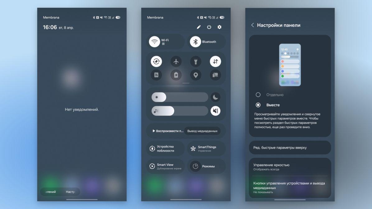 В новой оболочке One UI 7 Samsung решил, что так, как было — слишком удобно, и внёс пару «улучшений»: 🔻 Панель уведомлений теперь не объединена с быстрыми настройками — всё разнесли по разным жестам.