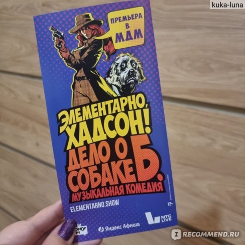 Еще в начале года муж как-то обмолвился, что неплохо было бы сходить на мюзикл. В прошлом году мы ходили на «Ничего не бойся, я с тобой» тоже от "Бродвей Москва" и мужу очень понравилось! Ну а с учетом активной рекламы и большого количества положительных отзывов мой выбор был очевиден! "Элементарно, Хадсон! Дело о собаке Б." , на мой взгляд, просто очаровательная вольная интерпретация произведений Артура Конан Дойла. На самом деле для того, чтобы выбрать эту постановку вовсе не обязательно любить произведения о Шерлоке. Спектакль идет на сцене театра "Маска" в Московском дворце молодежи (м. Фрунзенская). Очень красивый театр, коридоры которого украшают венецианские маски. В фойе продается сувенирная продукция, можно заранее забронировать столик в кафе, работает штатный фотограф и есть специальная фото-стена) На официальном сайте написано, что это семейная музыкальная комедия-детектив с веселыми песнями и ирландской пляской. Театральный продюсер Дмитрий Богачёв («Ничего не бойся, я с то