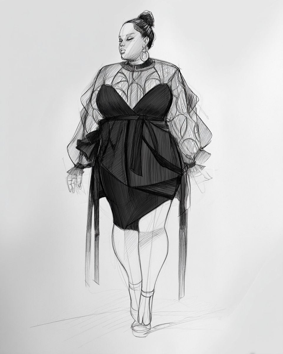Создано на основе запроса: Nibiru aapi plus size long hair fashion design sketch
