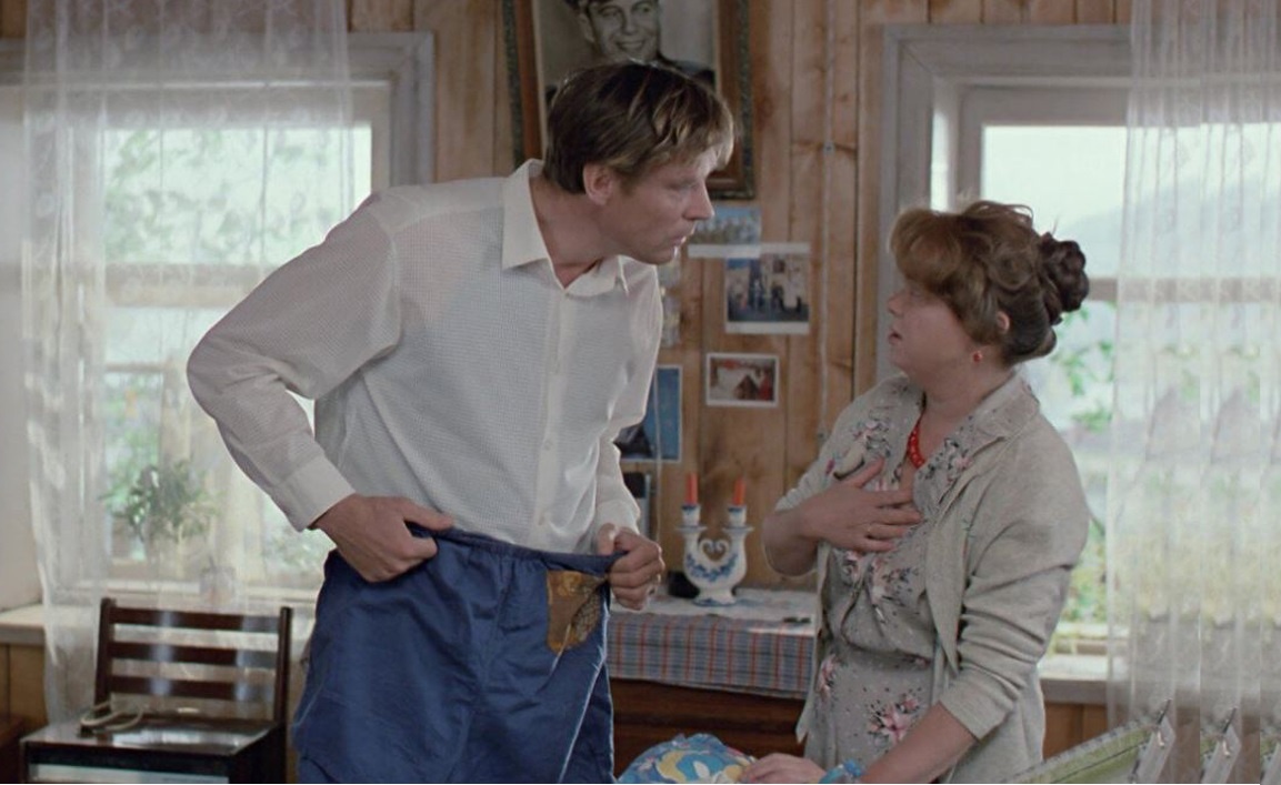Если задуматься, то легко обнаружить, что в этом фильме нет положительных персонажей, кроме детей Кузякиных. Трое детей Надежды и Василя ещё не испорчены, хотя Ленька уже на пути к этому - хватается за топор и гоняется за отцом. И не надо говорить, что "ну подумаешь, это нормально". Нет, это НЕ нормально. Не будет в здоровой семье сын гоняться за отцом с топором.