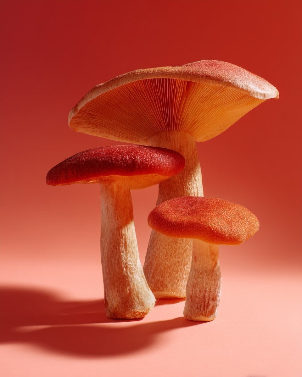 Создано на основе запроса: Wide shot of a three mushrooms indigenous to Nibiru. Shot in studio, still life, elegant, in the style of Tim Walker and Rineke Dijkstra. Warm-toned colour grading, red. Slight bird's eye view. Side light studio lighting. --- Автоперевод: Широкий выстрел из трех грибов, коренных для Нибиру. Красиво выглядит? 🤔 https://dzen.ru/id/65c0c65c86e4f837c27b24d7 #ИИ #AI #нейросеть #midjourney #art