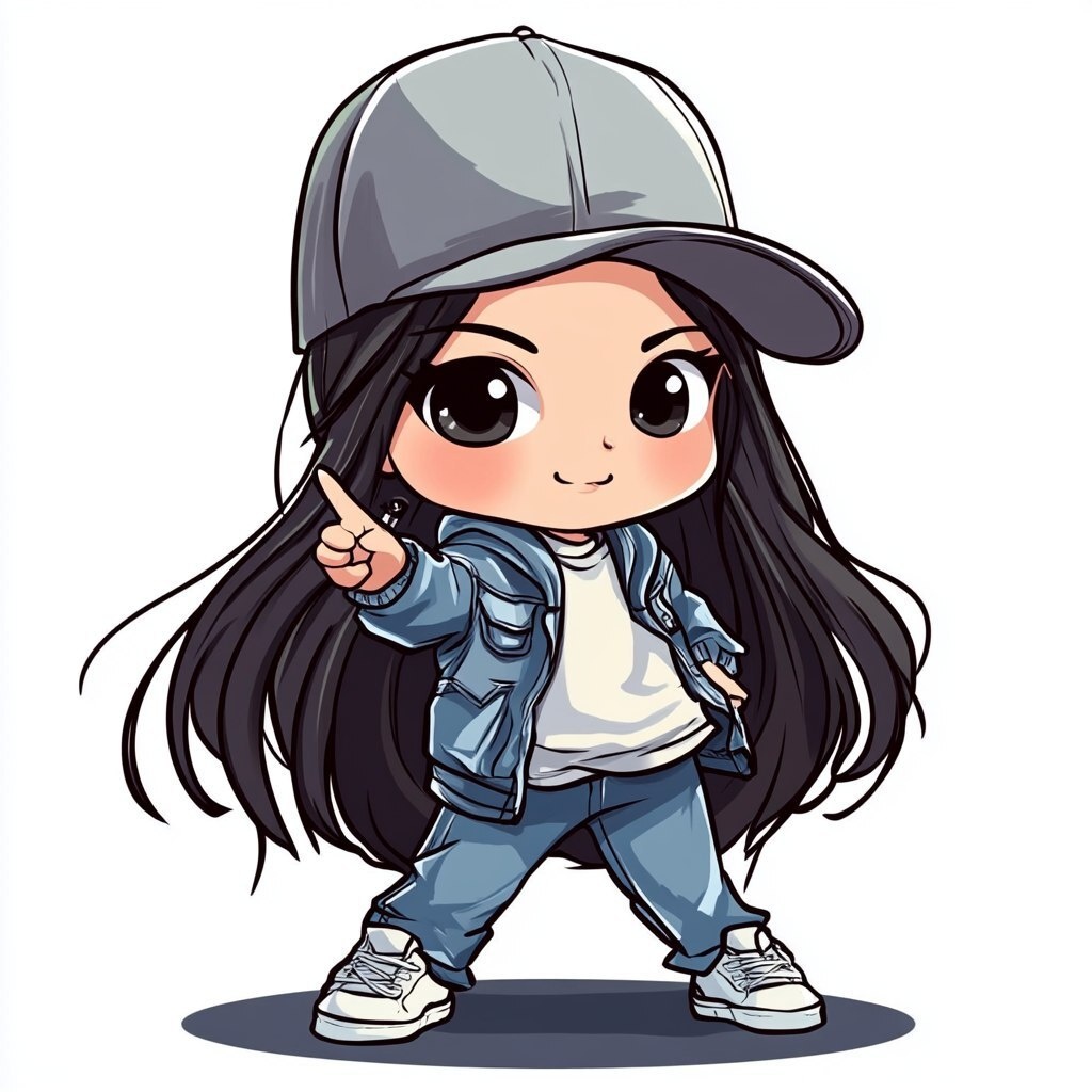 Создано на основе запроса: cute chibi asian american girl hiphop character from the anime style, not wearing a hat