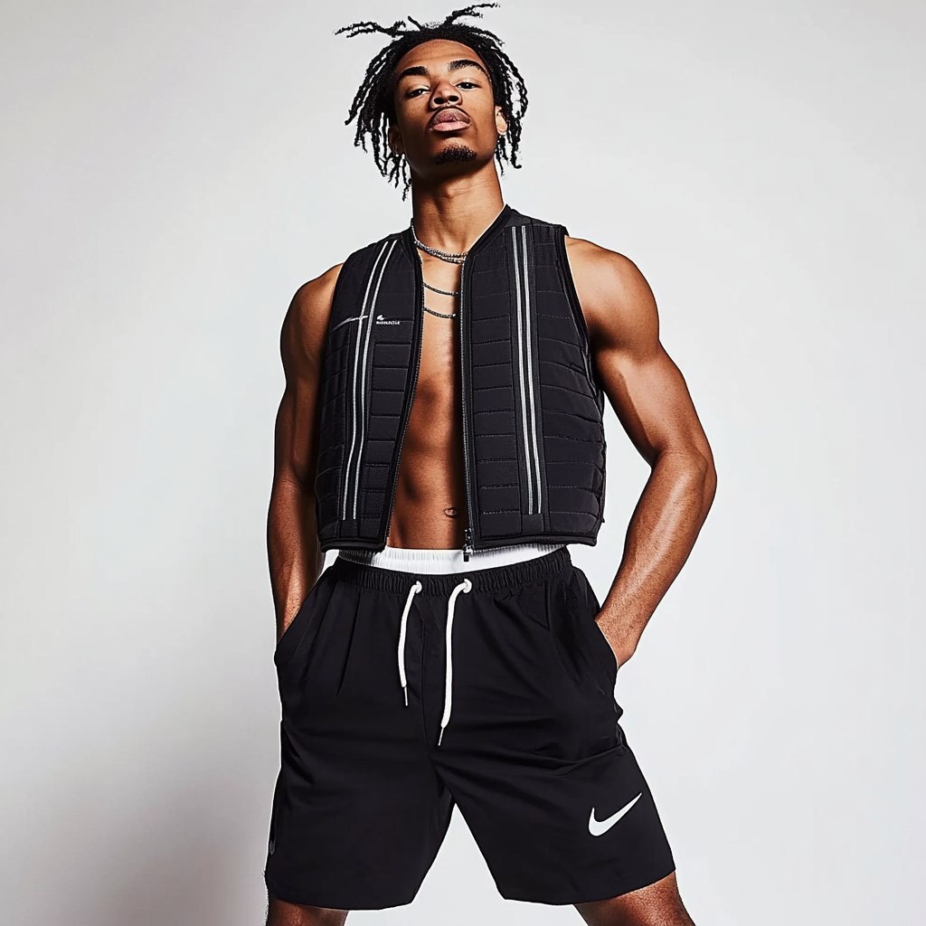 Создано на основе запроса: this men’s Nike two piece set with a full length vest instead of a cropped one --- Автоперевод: этот мужской набор Nike Two Piece с полной жилетом вместо укороченного Красиво выглядит? 🤔 https://dzen.ru/id/65c0c65c86e4f837c27b24d7 #ИИ #AI #нейросеть #midjourney #art