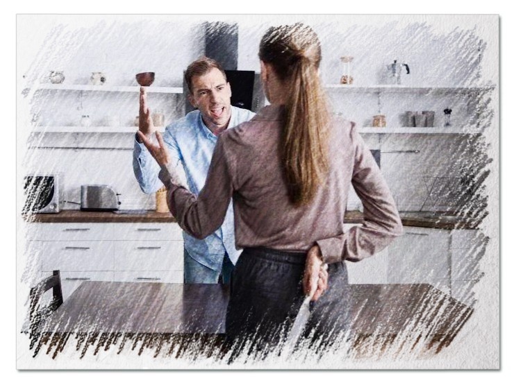 Когда Юлия тихонько зашла на кухню взять продукты для пикника, она увидела, как Олег и Катя занимаются делом, но молча, с недовольными лицами. Молодые люди сделали вид, что не видят маму Олега.