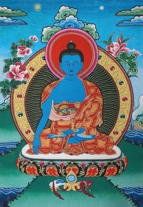 Будда Акшобхья (санскр. अक्षोभ्य / Akṣobhya, букв. "Непоколебимый", "Неизменный", "Невозмутимый"; тиб. ‘khrugs pa med pa / mi bskyod pa – Mikyopa, Микьёпа, букв. "Неволнующийся"). "Дхарани, которая тщательно очищает все кармические омрачения"