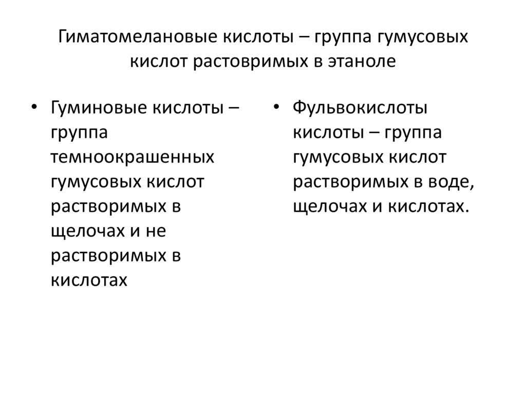 Гиматомелановые кислоты (ГК), наравне с фульвовыми и гуминовыми