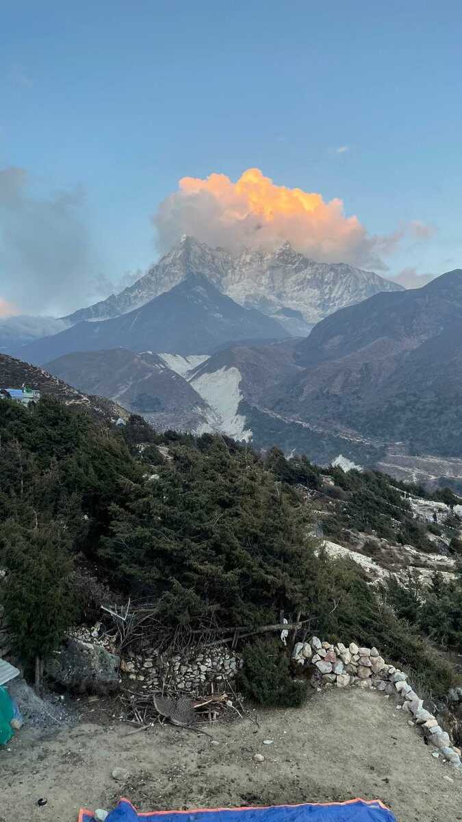 12-13.04. Пангбоче Мы дошли и заночевали до Пангбоче — место, где горы перестают быть “там, вдали” и становятся вот — прямо перед тобой. Вчера нам невероятно повезло с погодой. После нескольких дней в тумане —всё открылось. Чистое небо, прозрачный воздух и тот самый золотой час фотографа. Когда тени длинные, свет мягкий, и каждая вершина словно подсвечена изнутри. Из Пангбоче видно сразу несколько знаковых гималайских пиков, и именно вчера они показались нам во всей своей мощи: Ама-Даблам (6814 м) — стоит над деревней, элегантная, изящная, будто вырезанная из снега. Её называют жемчужиной Гималаев, Лхоцзе (8516 м) — четвёртая по высоте гора в мире, соседка Эвереста, с которой можно спустится и по седловине подняться на Эверест ( не для всех конечно). Массивная, монументальная, опасная гора. Ее пик видно на фото. Нупцзе (7861 м) — хребет рядом с Лхоцзе, дополняет её, и вместе они с Эверестом образуют ту самую священную тройку. Пумо Ри (7165 м) — словно пирамида, резкая, чёткая, утон
