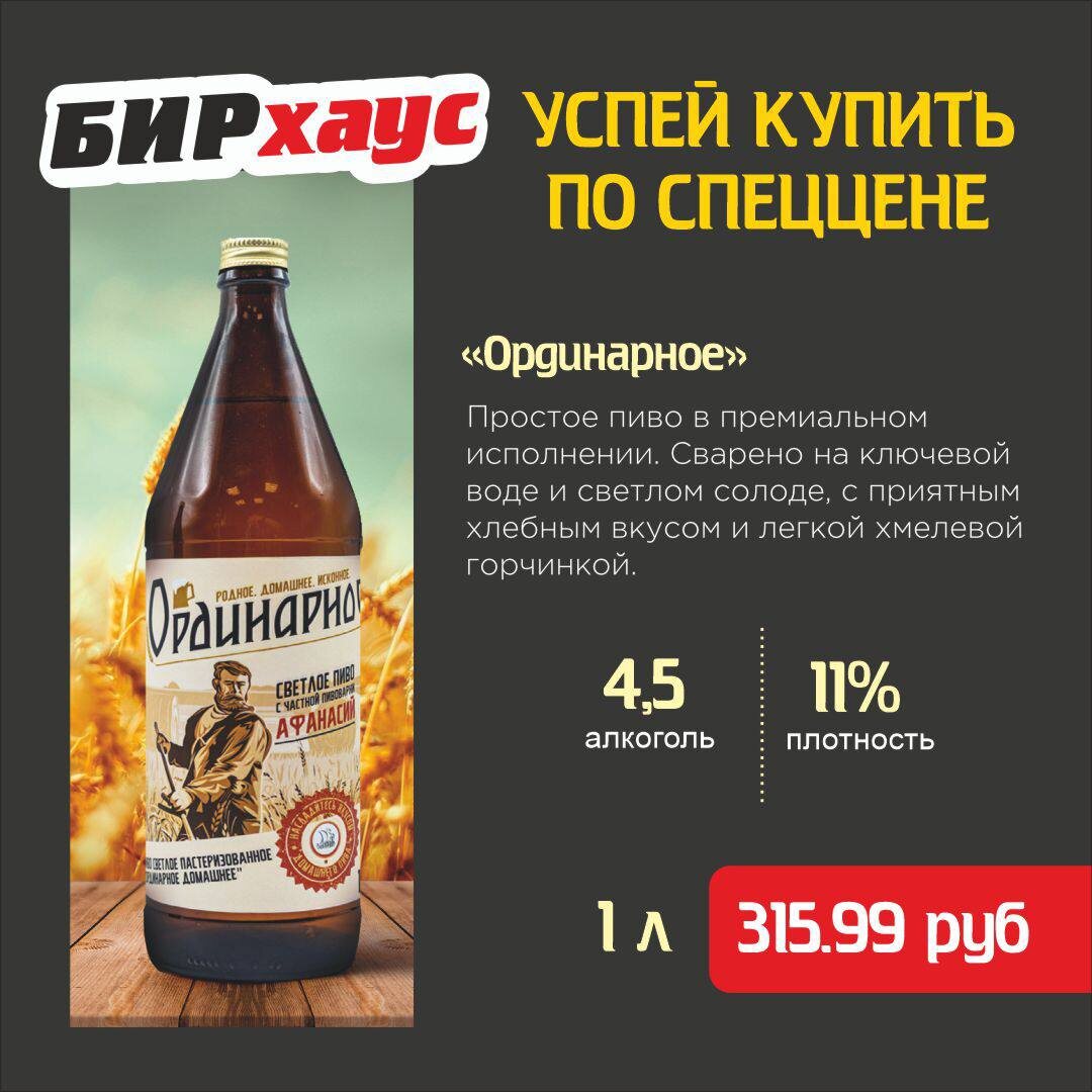 🔥Отличные новости! В сети магазинов БИРхаус спеццены на ваше любимое пиво от частной пивоварни Афанасий