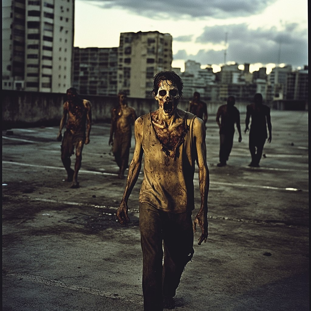 Создано на основе запроса: 10 zombies, men and women, walking on the empty parking lot of a shopping mall in Rio de Janeiro. Imagine we see the zombies from a distance. We are far from them --- Автоперевод: 10 зомби, мужчины и женщины, ходят по пустой парковке торгового центра в Рио -де -Жанейро. Классно выглядит? 🤔 https://dzen.ru/id/65c0c65c86e4f837c27b24d7 #ИИ #AI #нейросеть #midjourney #art