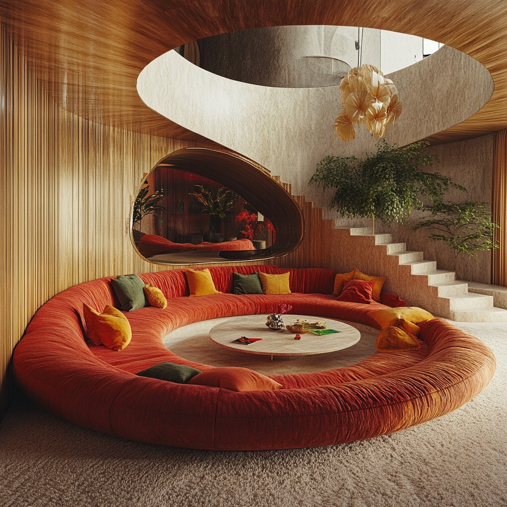 Создано на основе запроса: retro style conversation pits in a retro home yet very relaxed with a retro filter, ultra detailed, intricately