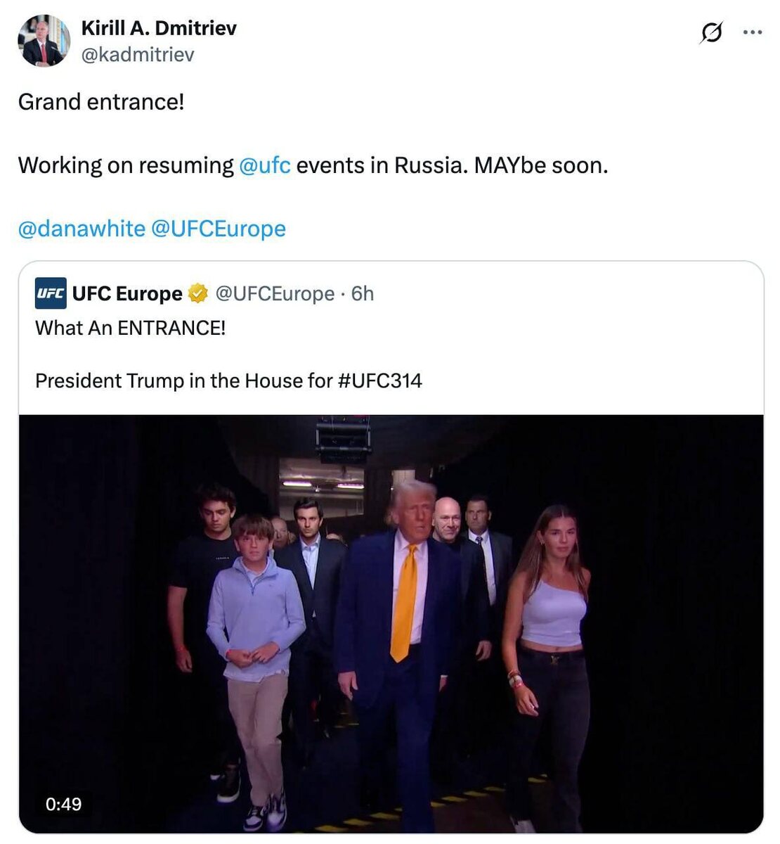 Глава РФПИ Кирилл Дмитриев заявил, что UFC может скоро вернуться в Россию