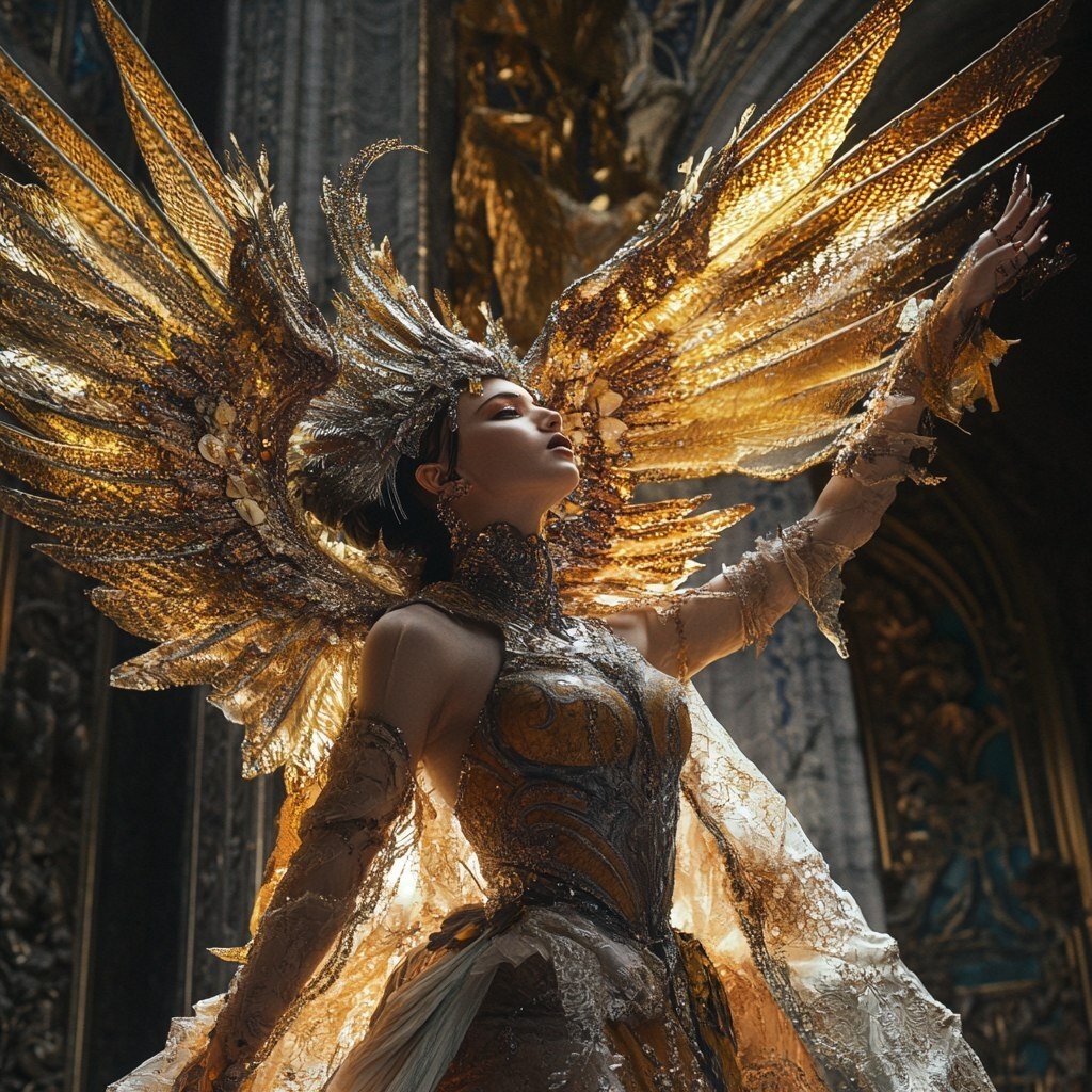 Создано на основе запроса: � Virtues (Zuriel) full body view, very detailed, in action, most significant scene, swarowski style kind of glow