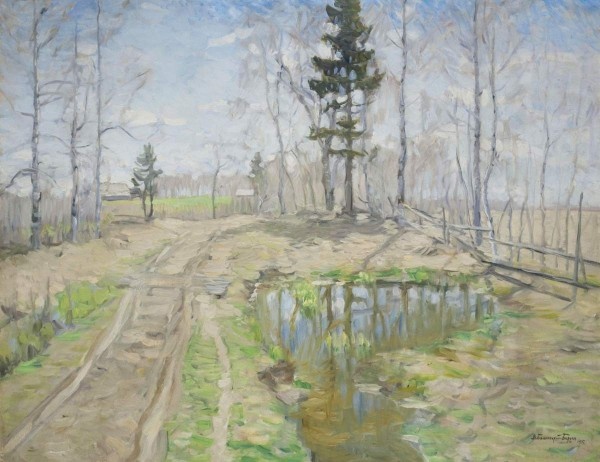 Тучи уходят на запад. Тяжко над полем ползут. И восстаёт из праха Свежей травы изумруд. Ветер в весенней силе Гонит от нас метель. Снежной последней пыли Кланяется апрель. Рады? Конечно, рады Долгожданной весне. Но, России солдаты, Мы ещё на войне. На запад гоним тревогу, Но, как бы цель ни близка, Предупреждение «Воздух!» Не отменяли пока. Чистить небо и землю – Долгий солдатский труд. К солнцу пробились стебли – Свежей травы изумруд. В. К. Бялыницкий-Бируля «Изумруд весны». 1915 г. Государственный Русский Музей