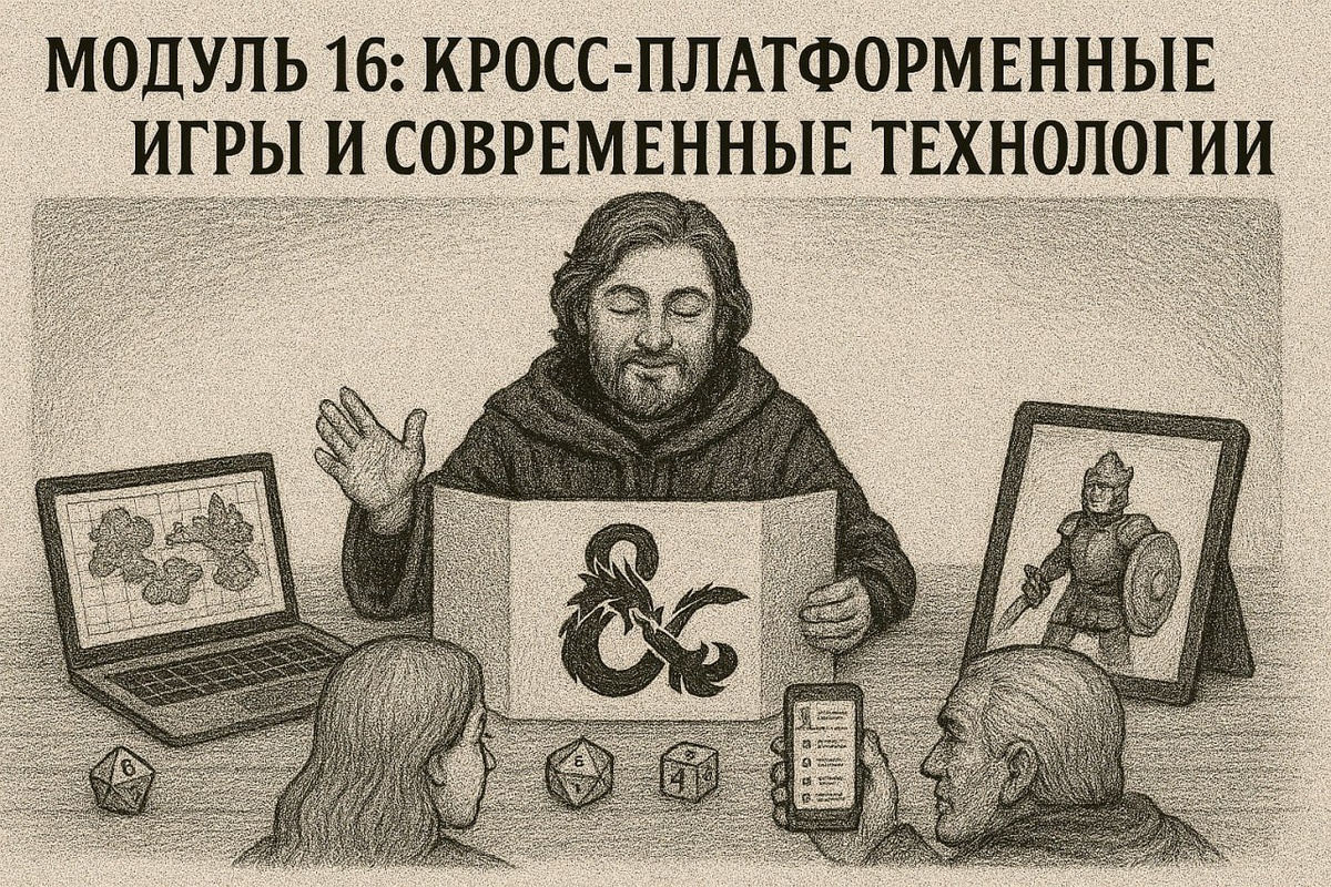 Модуль 16: Кросс-платформенные игры и современные технологии https://author.today/reader/434359/4073928 16.1. Виртуальные настольные игры: Roll20, Foundry, Fantasy Grounds. 16.2. Как проводить сессии через интернет и сохранять атмосферу. 16.3. Программы для создания карт и боевых сцен. 16.4. Интеграция мобильных устройств и планшетов в игровые процессы. Юрий Тихомиров. Подземелья и вопросы: как стать Мастером?