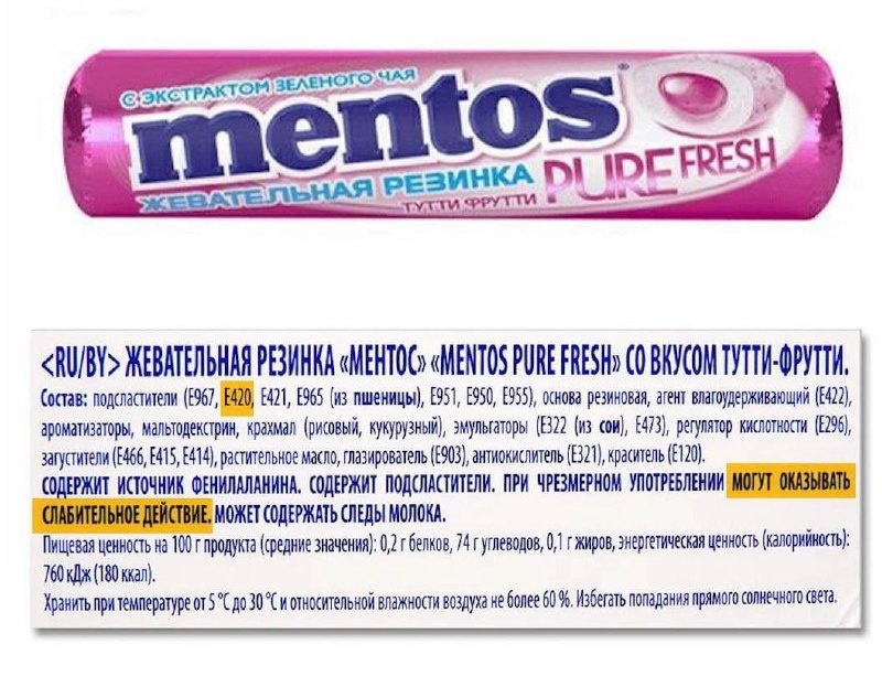 Оказалось, там содержится СОРБИТОЛ. Ужас в том, что лишь 0,4 грамма вещества способны УНИЧТОЖИТЬ ваш желудок, привести к болям и нескончаемой ДИАРЕЕ. При этом дозировку в жвачке установить невозможно, так как о ней не пишут производители!