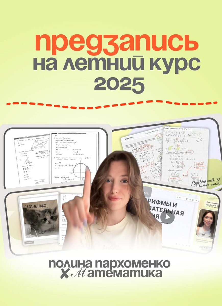 ⚡️УРАА! ПРЕДЗАПИСЬ на «Летний курс 2025» ОТКРЫТА! 😊😊 этот курс подойдёт для 9-11 классов, репетиторов, упор будет на базу и профиль ЕГЭ 3500 руб./ мес. начало 14 июня на Летнем курсе: ✔ изучим основные разделы математики с НУЛЯ ✔ разберем КИМы и изменения ЕГЭ (+огэ) ✔ будем встречаться с вами ОНЛАЙН раз в неделю по четвергам ✔ пройдём основы алгебры + планиметрию + тригонометрию + ОДЗ + логарифмы и ещё кое-что ❗️ курс обязателен для тех, кто сдаёт ЕГЭ в 2026/27 годах! ❗️ материалы летнего курса уникальны и не пересекаются с программой годового курса ☺️ ученикам летнего курса будет МИНИМАЛЬНАЯ цена на годовые курсы Заполняйте предзапись, чтобы попасть в БЕСПЛАТНОЕ предобучение и получить минимальную цену (это выгодно!): https://docs.google.com/forms/d/e/1FAIpQLScOBNfhwHMSO4HwQVEUlULICm9LrtVqZbRS6kx5VnU5HZBxHw/viewform?usp=dialog