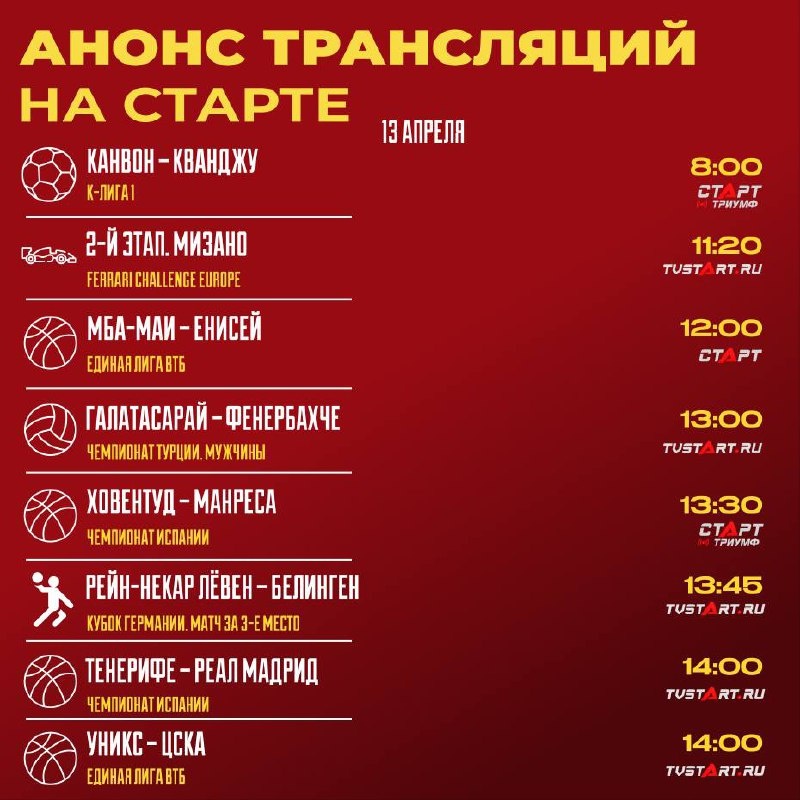 🔥 22 трансляции на день на TVSTART.RU Начинаем показывать Чемпионат Европы по тяжелой атлетике и Кубок Азии среди юношей до 17 лет. Отдельное внимание – финалу Кубка Германии по гандболу. Но начнем с корейского футбола, погнали! 🤩 🛒 Наше приложение в Google Play 💙 Наше приложение в RuStore 🛒 Наше приложение в App Store