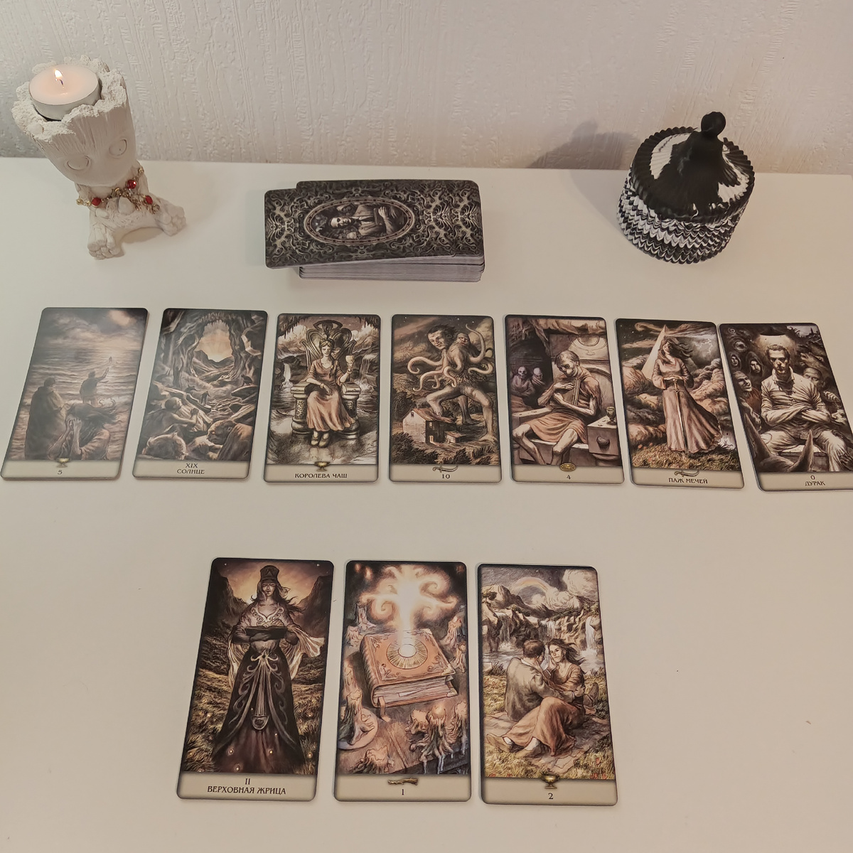 Всех приветствую. Посмотрим скорые события. Что расскажут таро ? Ваши переживания закончатся. Показывают был эмоциональный надлом в вашей жизни. Апатия и грусть были вашими "друзьями". Солнце скоро засияет в вашей жизни. Карты говорят про это. Вы станете счастливым и эмоционально наполненным человеком. Радость и позитивные чувства, будут вашими союзниками. 10 мечей - карта окончания всех ваших проблем. Вы много изучали, старались всё понять и узнать - это послужит вашему прорыву в новую жизнь. Благодаря вашему стойкому характеру, где вы выбрали стабильный подход к принятию ситуации и не растрачивать себя на борьбу и эмоции, которые вам бы только помешали - это и поможет вам обрести новую любовь. Карты показывают, что у вас будут отношения. Через вашу мудрость и интуитивное чутьё, возникнет прозрение. Вы поймёте чего хотите, и как это реализовать. Знакомство или встреча, ожидает вас. Серые будни и дождливое настроение, останутся в прошлом. Вы будете заняты новой жизнью, где нету туч и