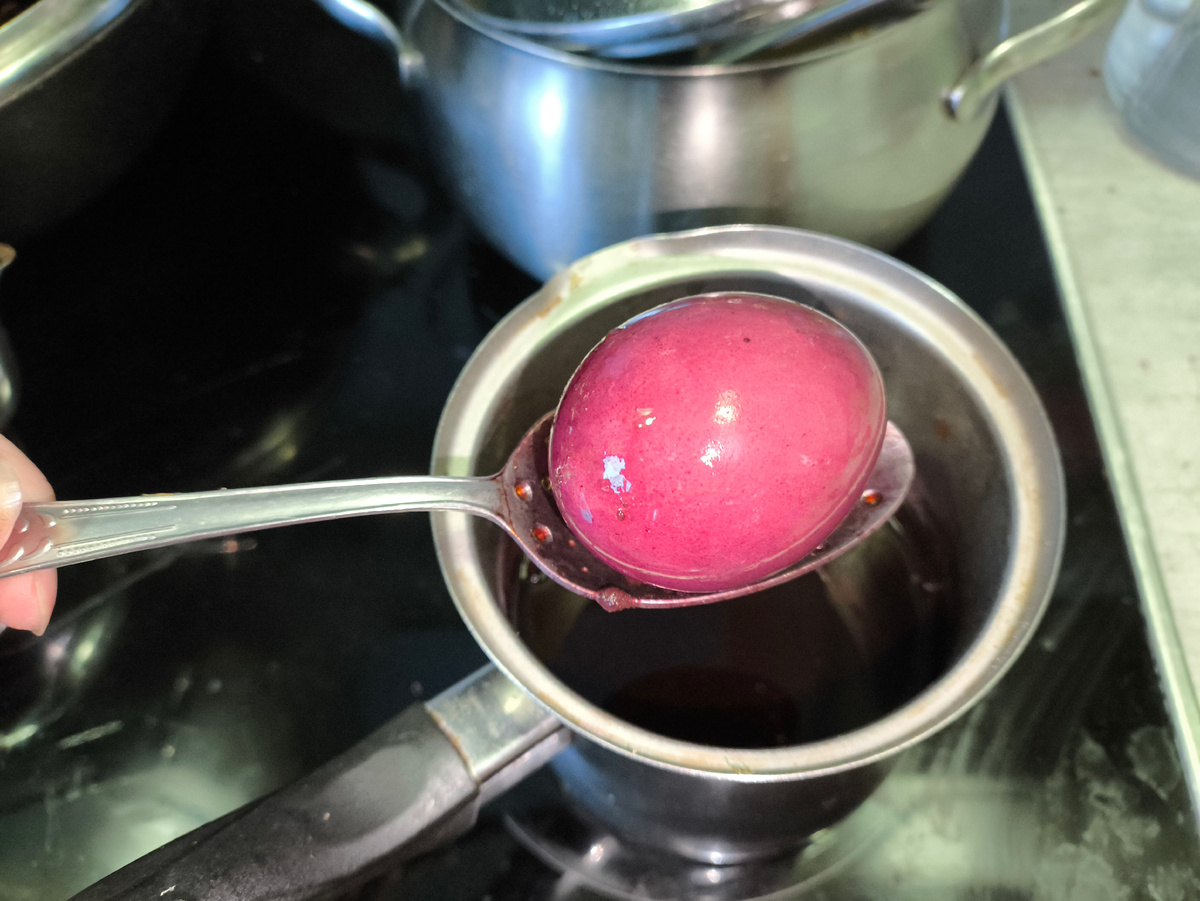 Понравилась вам вчера моя загадка. Перед Пасхой я решила попробовать разные способы окраски яиц натуральными красителями. Ну всё, как обычно, шило в одном месте покою не даёт. В общем, есть такая штука — марена красильная. Продаётся в аптеке. Есть в таблетках и фильтр-пакетах. Я купила и то, и другое. Яйцо предварительно отвариваем. Пока варится, в отдельной посудине кипятим фильтр-пакеты. Я вляла два и ещё таблетку кинула. Это все примерно на 300 милилитров воды. Варёное горячее яйцо аккуратно кладём в компот из марены. Варим ещё минут пять. Вычитала, что чем дольше держишь, тем ярче цвет. Дальше фото. Это цвет минут через десять. Насыщенно-розовый. Это через полчаса. Камера делает яйцо более красным. На деле оно ближе к фиолетовом, когда обсыхает, становится матовым и бледнеет. Здесь я яйцо протёрла маслом, и цвет более близок к натуральному. Марене зачёт. Буду красить ею на Пасху! Ниже ссылка на видео. Там и пачку марены покажу и расскажу всё! Важно! Уксус в марену не клад