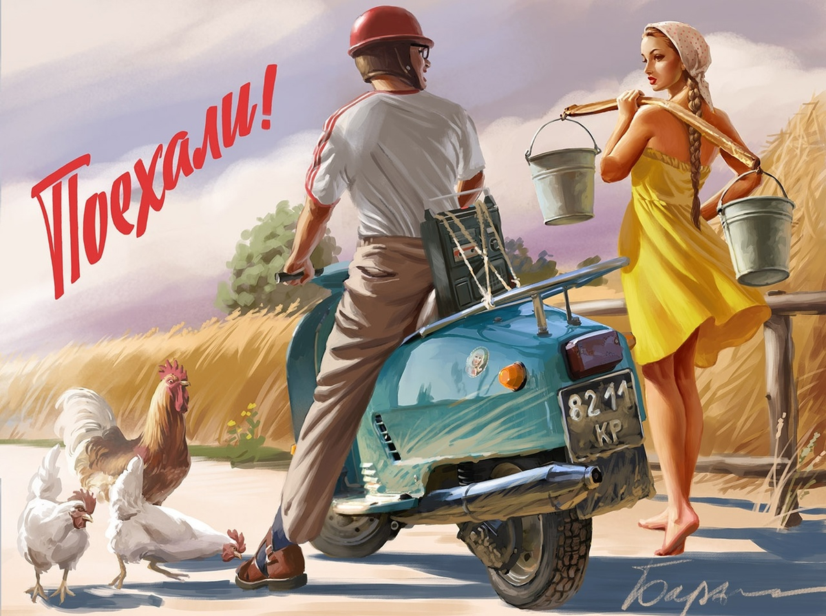 Поехали. Раньше приглашали прокатится на тракторе! Плакат Практичны и удобны в работе кирзовые сапоги! На счект удобства сомневаюсь, но работать в них отлично! Фото со страницы Валерия Баоыкина в ВК. Работницы Газовых линий. Ударницы каптруда! Автостопщицы. Автостопом в социализм или куда подальше? Иллюстрация для календаря компании "Газовые системы" Интересно, о чем они разговаривают? ___________________ Вот такой он советский пин-ап Валерия Бырыкина! Мне нравится, очень! А вам он нраится? Источник: Вк Валерия Барыкина ___________________ П.С. Показов, наверное, не будет - и просмотров тоже, а когда-то на старом своем канале было бы море лайков и комментов!