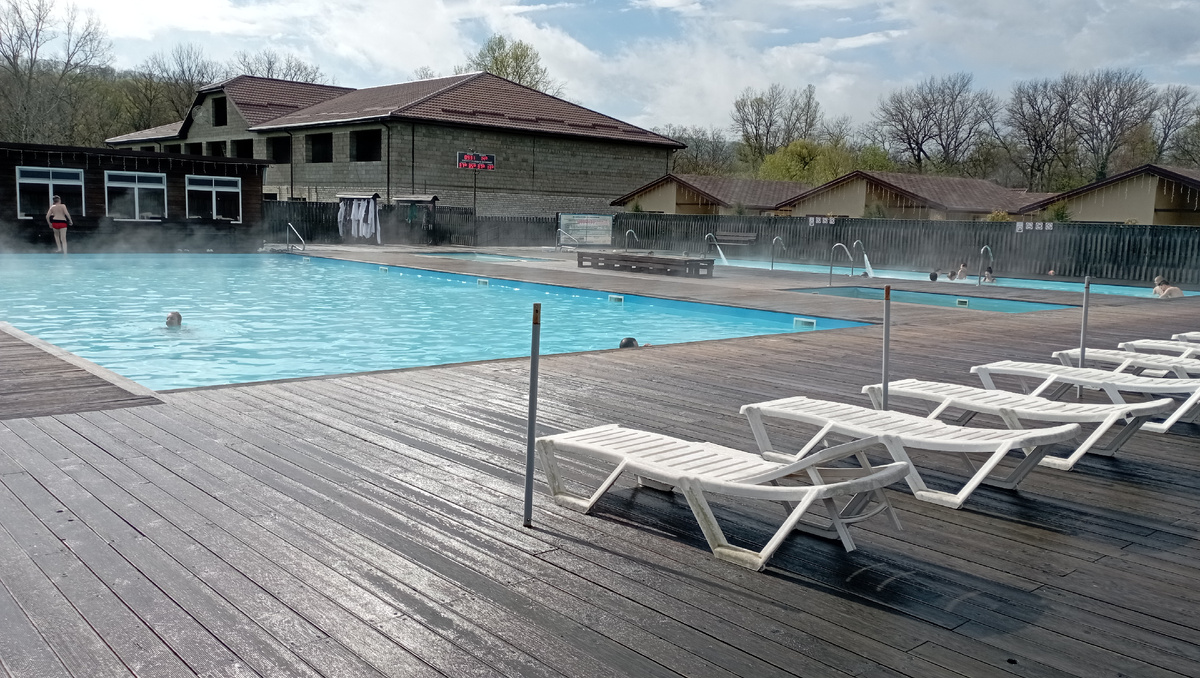 Начало поездки в Акваторию это продолжение моего двойного выезда, который начался в Мостовском с базы Старая Мельница. И так после старой мельницы я проехал броду и стал на ночевку в русле реки Лаба. Так как всю ночь шел дождь, меня не покидало беспокойство о том: 1 . Не смоет ли меня вместе с машиной. 2. Как я буду выбираться отсюда утром? Я давно купил и вожу с собой набор цепей для передних колес и вот пришло время их испытать. Я проснулся в 5 утра и одел этот девайс на передние колеса, реально улучшилась проходимость, уменьшился риск свалиться в колею. Переехав, брод я встретил местную молодежь, которая еще не ложилась спасть после какой-то вечеринки и приехали на "четырки" на реку на "афтопати". Акватория находится от Краснодара ближе, чем Мостовской, проезжаем Майком и едем по трассе в сторону Курджипоской. В 8-45 я уже был на парковке Акваторию Комплекс начинает работу с 9-00.В Акватории раздевалки, административные помещения, полы между бассейнами, кафе — все сделано из дерев