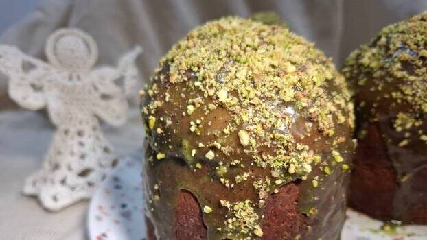 Роскошный дубайский кулич с хрустящей начинкой и фисташковой глазурью