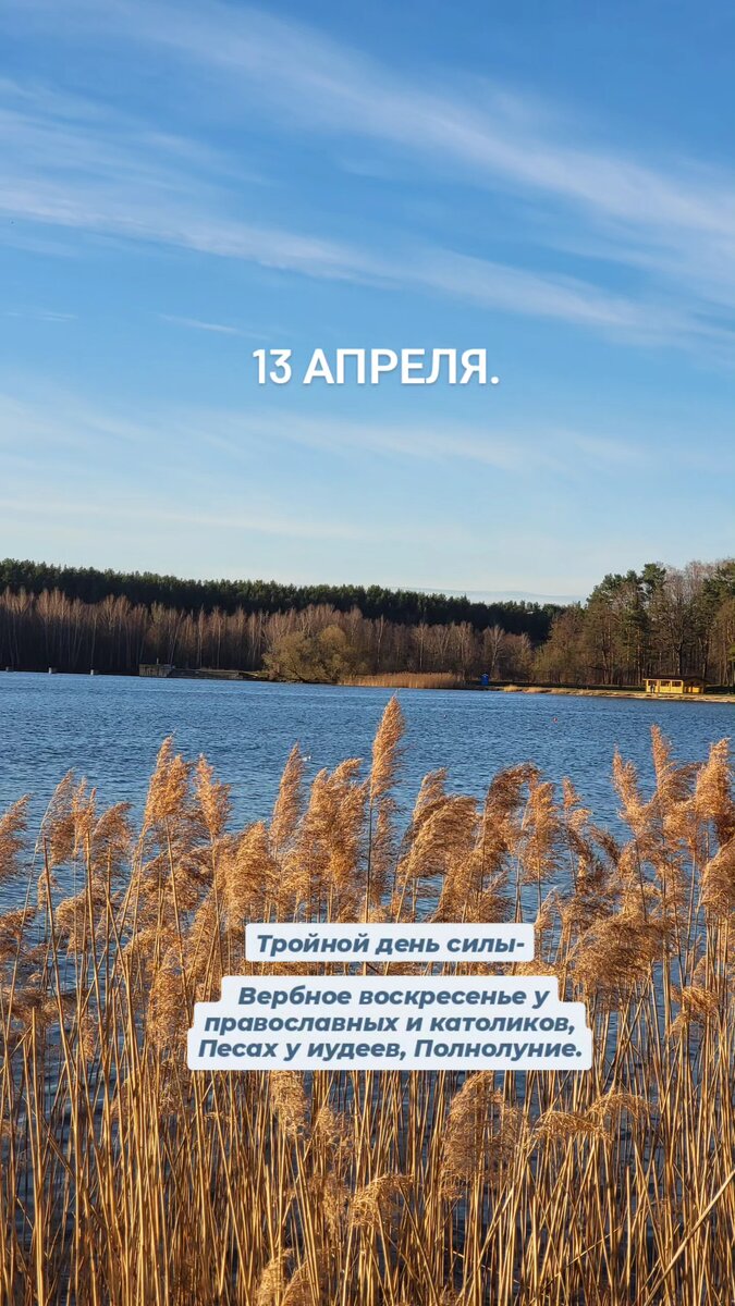 13 апреля. Тройной день силы- Вербное воскресенье у православных и католиков, Песах у иудеев, Полнолуние. Мой давний ритуал: Беру веточку вербы, стучу себя ( и вас, дорогие!) легко по плечам со словами: «Не я бью, вярба бье, Великдзень- праз тыждзень». Здоровья и счастья в каждой минут❗🙏 ✨Живой день, живые энергии, весенний толчок в светлую сторону. Начало очень светлого и активного периода. Используйте его по максимуму. Обнимаю.💝 👫ВМЕСТЕ!