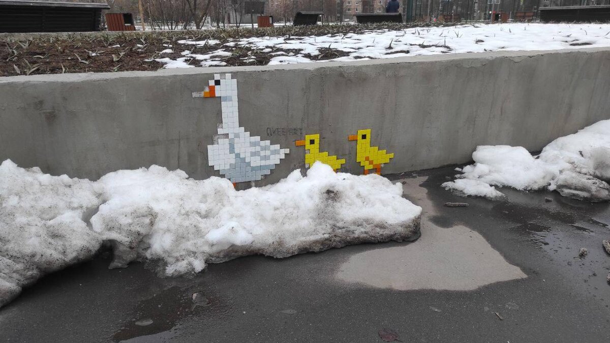 Гусята выглядывают из под снега ❄️