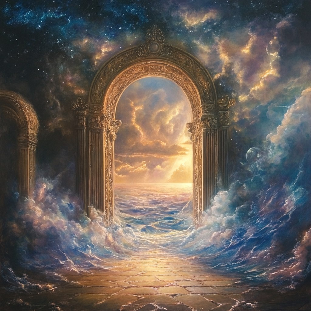 Создано на основе запроса: a magical, mystical porta into a new layer of reality. Divine environment