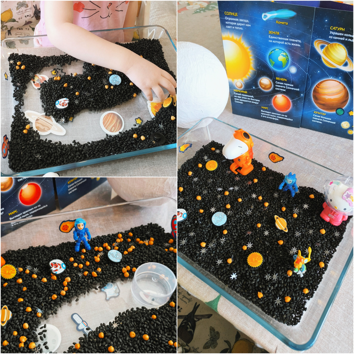А вы знали, что для полёта к звёздам не нужны дорогие наборы? Мы превратили кухню в космическую станцию всего за 500₽! Покажите детям, как создать галактику из круп и красок — они будут в восторге, а ваш кошелёк скажет «спасибо». 💫 Вчера наш «космический квест» вышел на новый уровень! 🌌✨ 🌟 Поиск сокровищ в «чёрной дыре» нашли планеты, ракету и космонавта, который потерялся в нашей галактике 💫 Сортировка звёзд пинцетом и руками (малышка решила, что это «космическая уборка»). 🌟 Созвездия из синельной проволоки. 🌍 Планеты-шарики — рисовали краской, а получились шедевры в стиле «абстрактный космос». 🍯 Гора поделок — хватит на выставку в детском саду. 🍯Море эмоций — от восторга до «мам, а почему Юпитер зелёный?». 🍯 Кухня в краске и крупе — будто тут приземлился метеорит. Но это же признак удачного дня! 💥 Совет: Если ребёнок спрашивает: «А где настоящий космос?» — отвечайте: «Он у нас дома!» 🪐 - Что нужно: Салфетки, клей ПВА, воздушный шарик. - Как сделать: