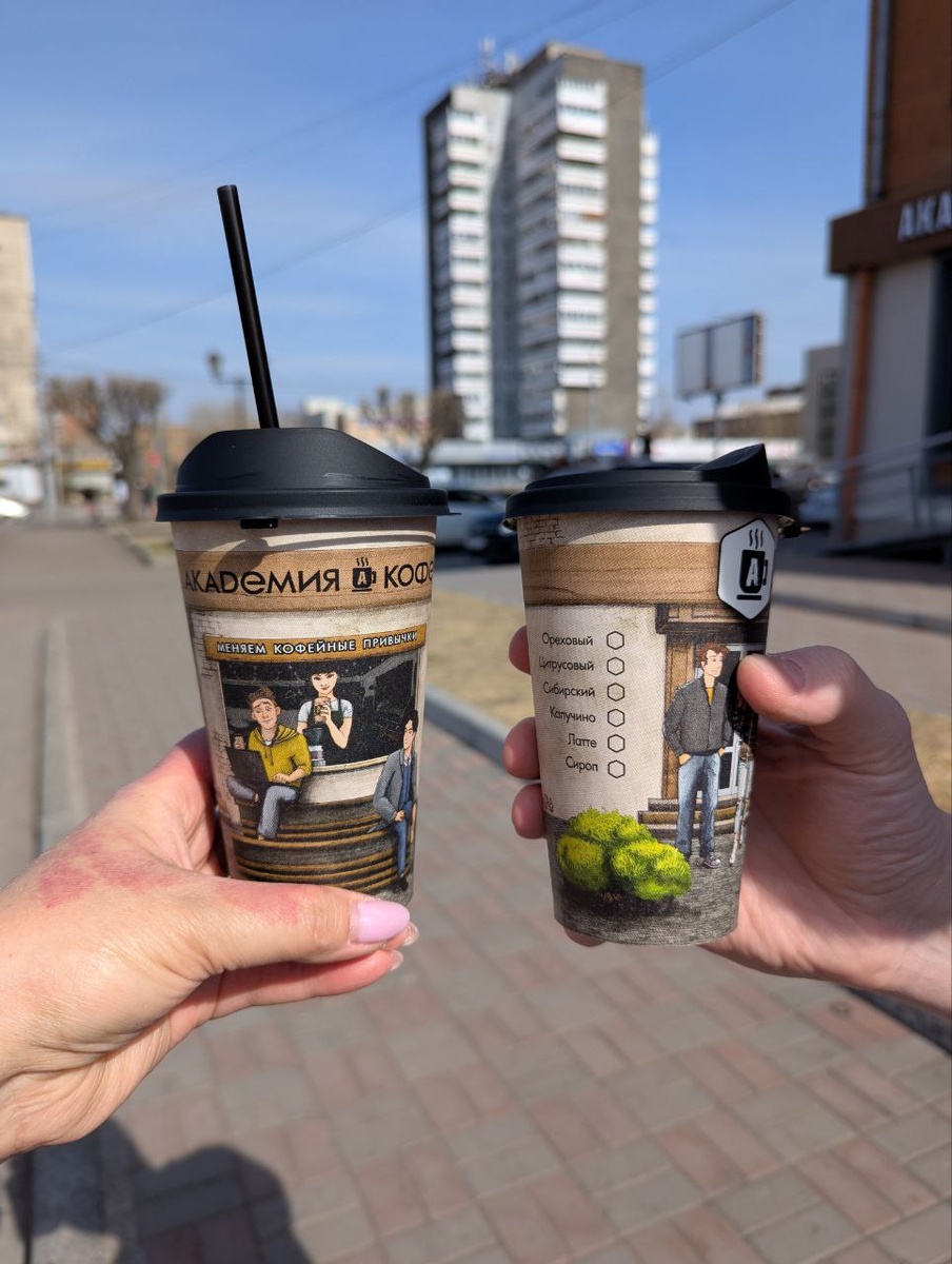 Академия кофе на Крас.рабе. Утро воскресенья началось с поездки в Красноярск. Заглянули подзарядиться в Академию кофе. Неоднократно уже убеждались, что в этой кофейной сети всегда очень вкусные напитки! Попробовала Раф фундук-макадамия. Очень выраженный ореховый вкус с кусочками дробленых ядрышек. Адрес: просп. имени Газеты Красноярский Рабочий, 93