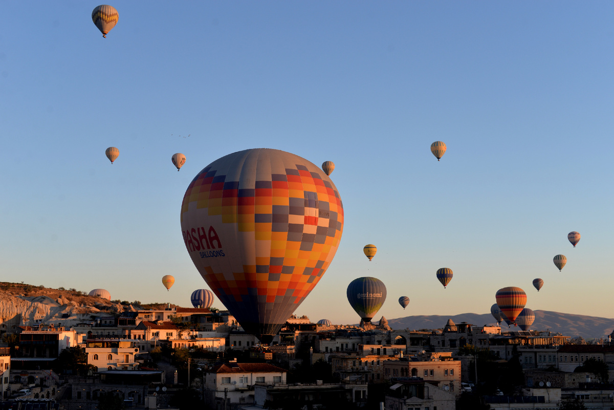 Первое утро в Гёреме началось с того, что нас в 6 утра разбудила Милагрос. Она прыгала по кровати, тыкала пальцем в окно и кричала, чтобы привлечь наше внимание к тому, что происходило за ним. Прямо за окном в воздух поднимались воздушные шары. Мы выбежали на террасу и увидели как в небо взлетали десятки воздушных шаров с разных площадок города.