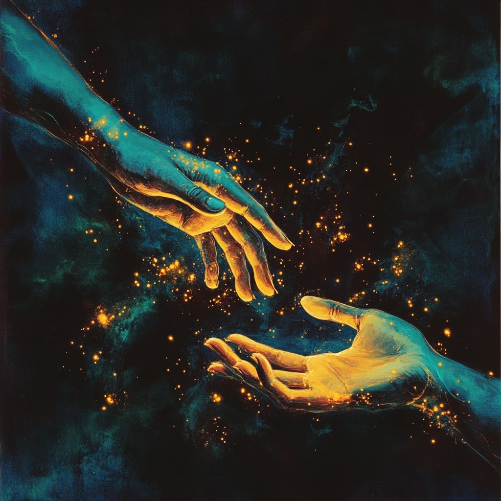 Создано на основе запроса: Illustration of two hands reaching for each other, beautiful image