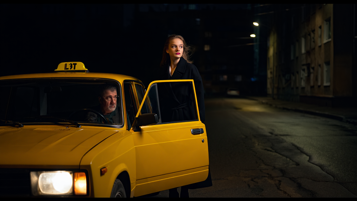 Город плыл за окном — пустые остановки, закрытые кофейни, бродячая собака, трусящая вдоль обочины. Неоновая вывеска круглосуточного ломбарда мигала, отражаясь в лужах, а вдалеке прогрохотал грузовик, уходя в ночь. Алексей заметил, как девушка чуть повернулась, когда навигатор пробубнил: «Через двести метров поверните направо». Её пальцы сжали клатч, но она тут же отпустила, будто спохватившись. Он решил попробовать ещё раз: