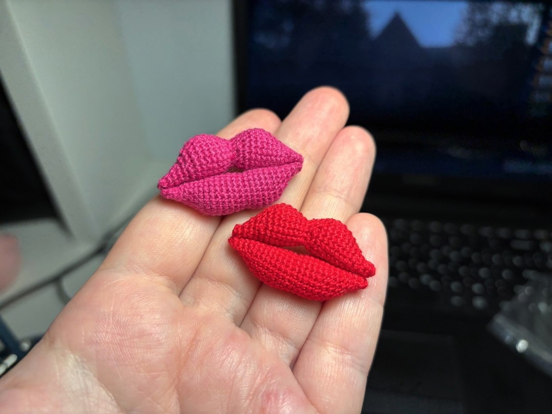 Что ж, мои опасения по поводу того, что пряжа алого цвета сильно тоньше, чем ирис, оказались напрасными. Не так уж и сильно броши отличаются по размеру в итоге. Я зря волновалась))
