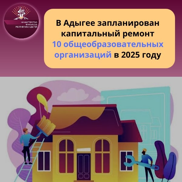 В рамках госпрограммы РА «Развитие образования» на реализацию мероприятий по модернизации школьных систем образования республики из федерального бюджета Адыгее предоставлена субсидия для проведения капремонта и оснащения зданий общеобразовательных организаций с однолетним циклом реализации в 2025-2026 годах.🏣 В текущем году планируется выполнить капремонт десяти общеобразовательных организаций. В республиканском бюджете на указанные цели предусмотрено 903,1 млн рублей.✅ #БюджетАдыгеи #минфинадыгеи #министерствофинансовреспубликиадыгея #новости_минфин_ра #новостиМинфинРа