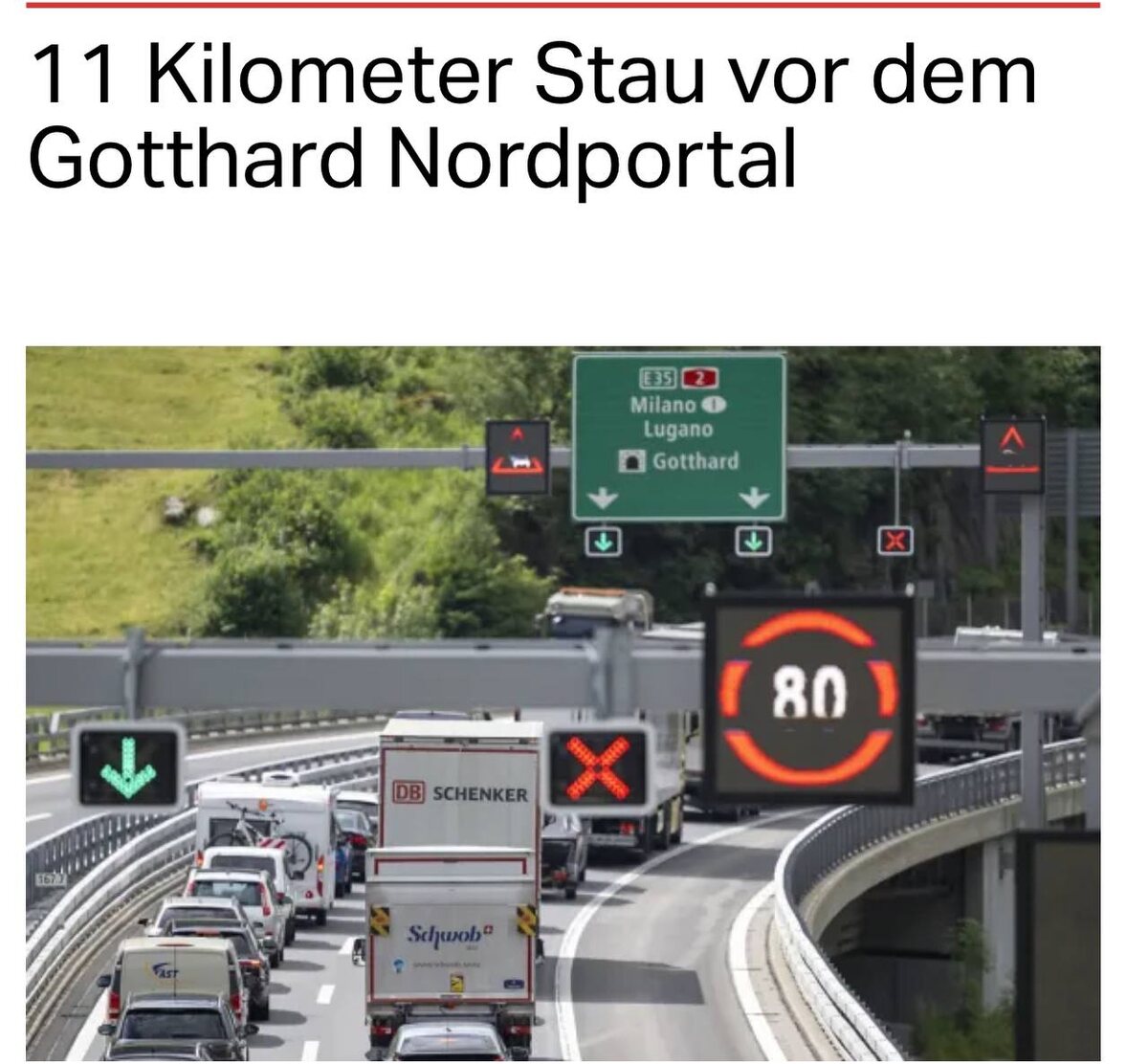 📌 " В субботу утром перед Северным порталом Сен-Готарда образовалась пробка протяженностью 14 километров