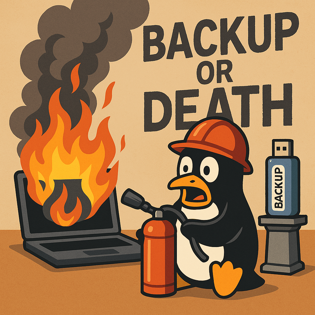 — История из чата: «Как один парень удалил /home, а восстановил бэкап 2007 года с Nokia 6300». 🎛️ Timeshift — твоя машина времени. Просто нажми кнопку, и система "до поломки" вернётся, как бывший в плохую погоду. sudo timeshift --create --comments "Перед тем, как я всё сломаю" 💣 rsync — для параноиков, которые спят с двумя SSD под подушкой. rsync -avz /home /mnt/backup_disk/ 🧠 BorgBackup — для тех, кто хочет, чтобы было сжато, зашифровано и максимально шизоидно. borg create /backup::'{now}' ~/Documents — «Запустил dd не туда. Теперь у меня /dev/sda — это чёрная дыра.»