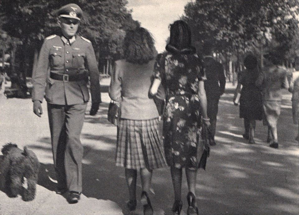 Ты, наверное, слышал, что французы объявили войну Германии сразу после нападения на Польшу в сентябре 1939 года. Но если ты думаешь, что они действительно воевали — вынужден тебя разочаровать. Пока Гитлер катком проходил Европу, французы сидели за своей линией Мажино и ждали, когда буря пронесётся мимо. Не пронеслась. В мае 1940-го всё рухнуло: немецкие танки молниеносно разнесли оборону, а Париж капитулировал 14 июня — без боя, с белым флагом. Город, который гордо называли «сердцем Европы», стал для немцев курортом, куда можно было попасть «по путёвке» — по личному приказу Гитлера: «Каждому — один раз в Париж». Для солдат Вермахта тут был настоящий рай: бесплатные рестораны, закрытые кинотеатры, элитные бордели, доступные только для них. Даже вышел специальный путеводитель по Парижу на немецком — чтобы знали, где покушать, где развлечься и где найти себе француженку. А вот тут начинается самое интересное. Некоторые француженки действительно старались не замечать немцев. Шли по улицам,