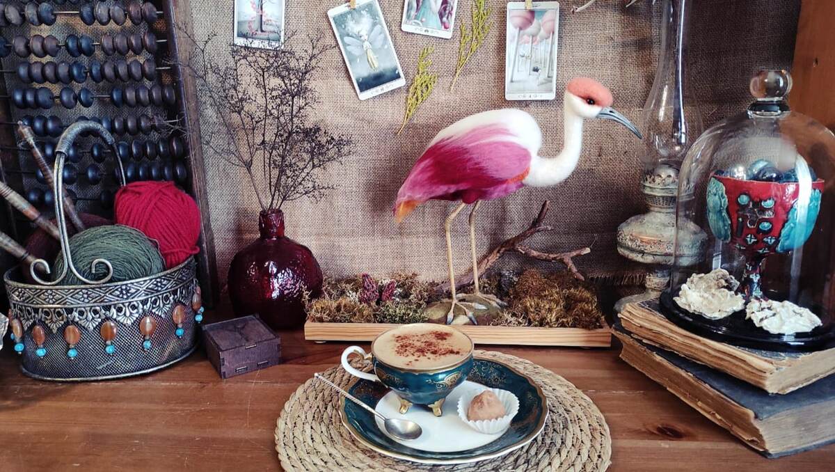 С дачи я привезла свою розовую цаплю. Валяла я её во время пандемии, на он-лайн мастер-классе. Я знаю, что розовых цапель нет, но мне захотелось, что-бы она была именно такая.