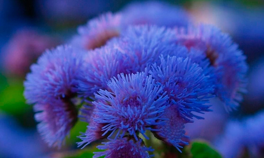 Название этого цветка образовано от латинского «ageratos», что в переводе означает «нестареющий». Дело в том, что растение долго сохраняет свежий вид. Цветки мелкие, узкотрубчатые, обоеполые и душистые. Собраны в небольшие соцветия-корзинки 1—1,5 см в диаметре, а далее – в сложные щитковидные соцветия до 10 см в поперечнике. Благодаря своей декоративности и сходству с пушистыми помпончиками агератум входит в число наиболее любимых садовых растений.