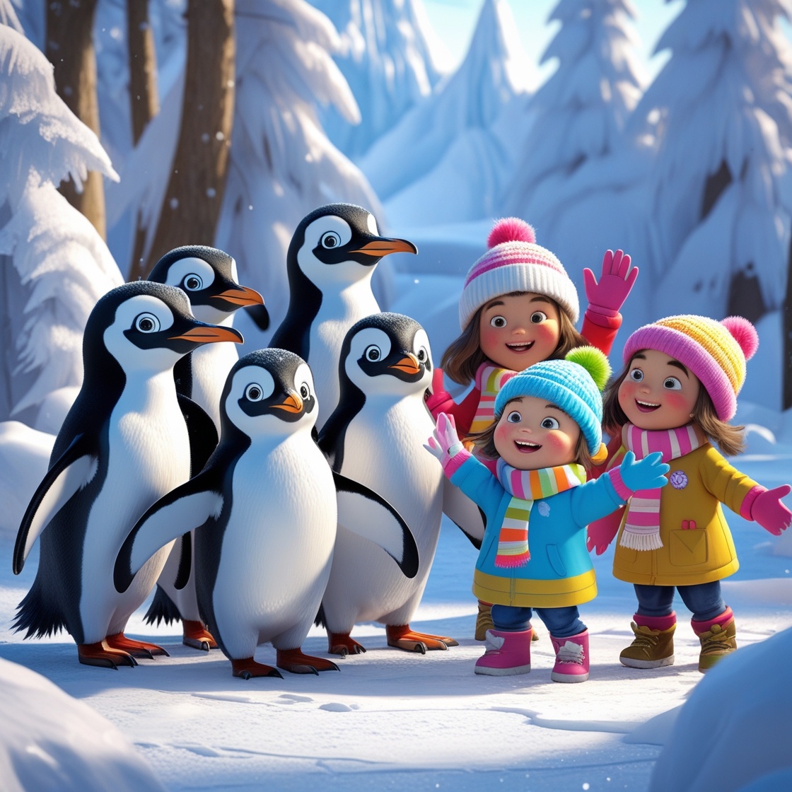 — Здравствуйте, ребята! Сегодня у нас очень необычный и весёлый день — мы празднуем Всемирный день пингвинов! Вы когда-нибудь видели пингвина? А знаете, где он живёт? Сегодня мы отправимся в волшебную снежную страну, где живут эти смешные, но очень интересные птицы.