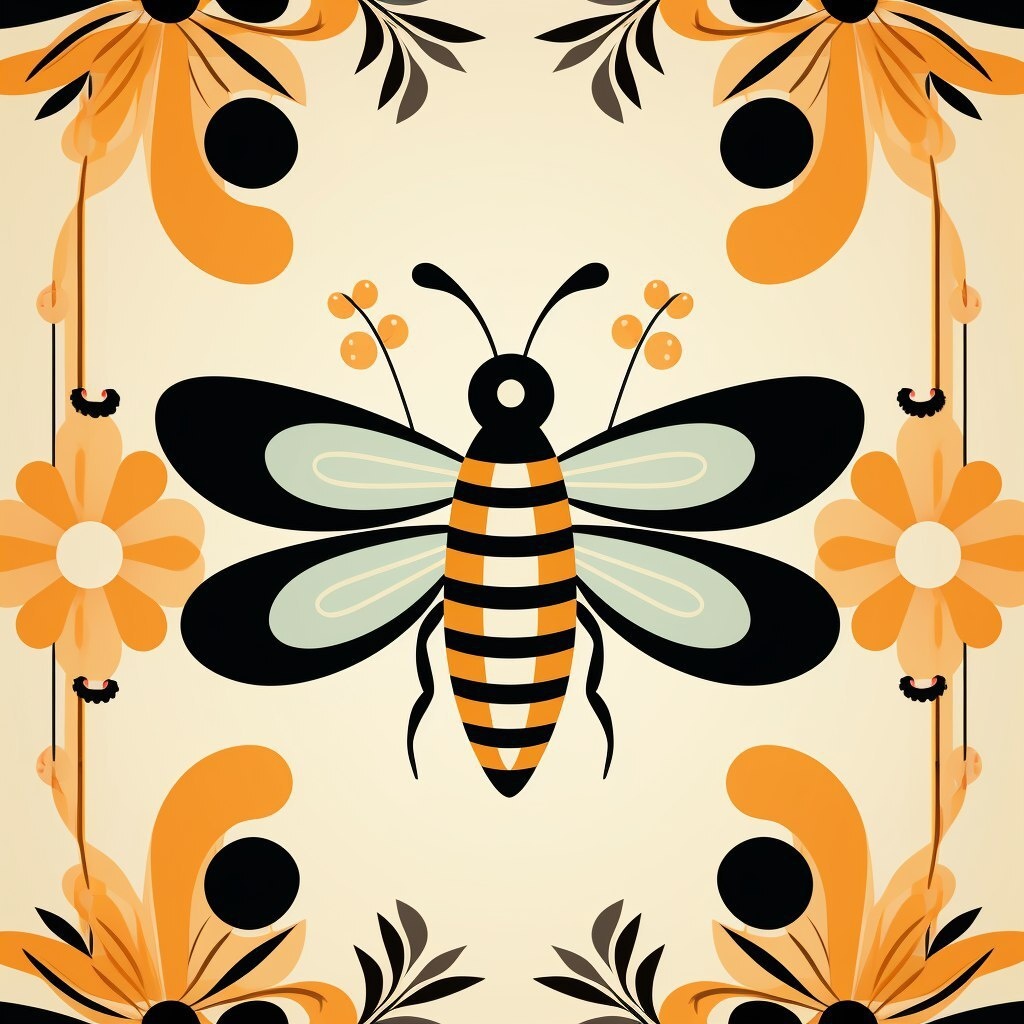 Создано на основе запроса: seamless wallpaper pattern based on bee motif, abstract, 1950s modernism