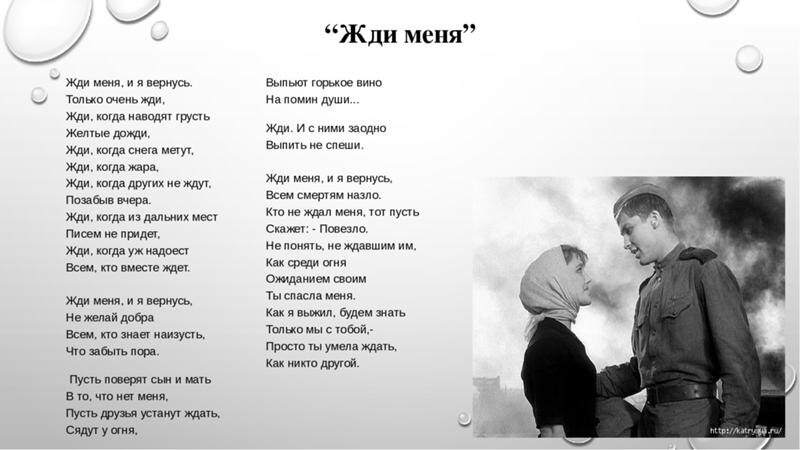 И мне кажется, что на стихотворение "Жди меня" можно посмотреть с разных точек зрения.