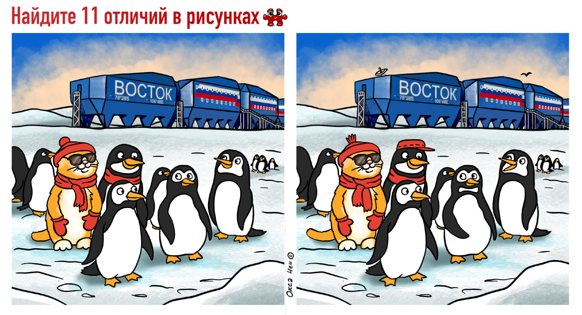 Вот у нас весна уступила на время холодам, и мы говорим холодно-холодно… а на нашей новой станции Восток в Антарктиде сегодня -70 по цельсию и свежий ветерок. И у них это еще даже не зима. Наш котик вышел прогуляться, пообщаться с местными жителями, и бегом обратно к ученым на станцию. Горизонтальная картинка: Вертикальная картинка: Живая картинка: Ответ: