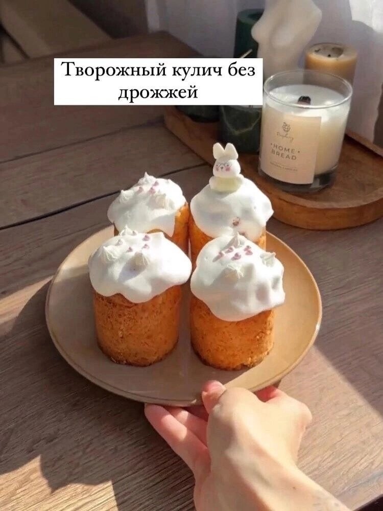 Пасха без куличей — это всё равно что Новый год без ёлки! Но что делать, если процесс работы с дрожжевым тестом вызывает у вас стресс? Я с радостью поделюсь с вами идеальным решением — рецептом нежных творожных куличей без дрожжей! 1. Просейте муку, добавьте разрыхлитель и ванилин. 2. Взбейте яйца с сахаром в пышную массу. 3. Добавьте мягкое сливочное масло. 4. Введите творог (предпочтительно мелкозернистый). 5. Постепенно добавьте мучную смесь. Выпекайте куличи при температуре 180°C в формах, заполненных наполовину (тесто сильно поднимается!). Время выпекания — около 30-40 минут. Для глазури взбейте один белок, постепенно увеличивая скорость. Затем добавьте сахарную пудру и продолжайте взбивать до образования пиков. Результат превзойдёт все ожидания! Нежные, воздушные куличи с аппетитной корочкой станут настоящим украшением вашего пасхального стола. Готовьте с удовольствием и делитесь своими результатами в комментариях! 🐣✨ #пасха #куличи #рецепты #выпечка #пасхальныерецепты