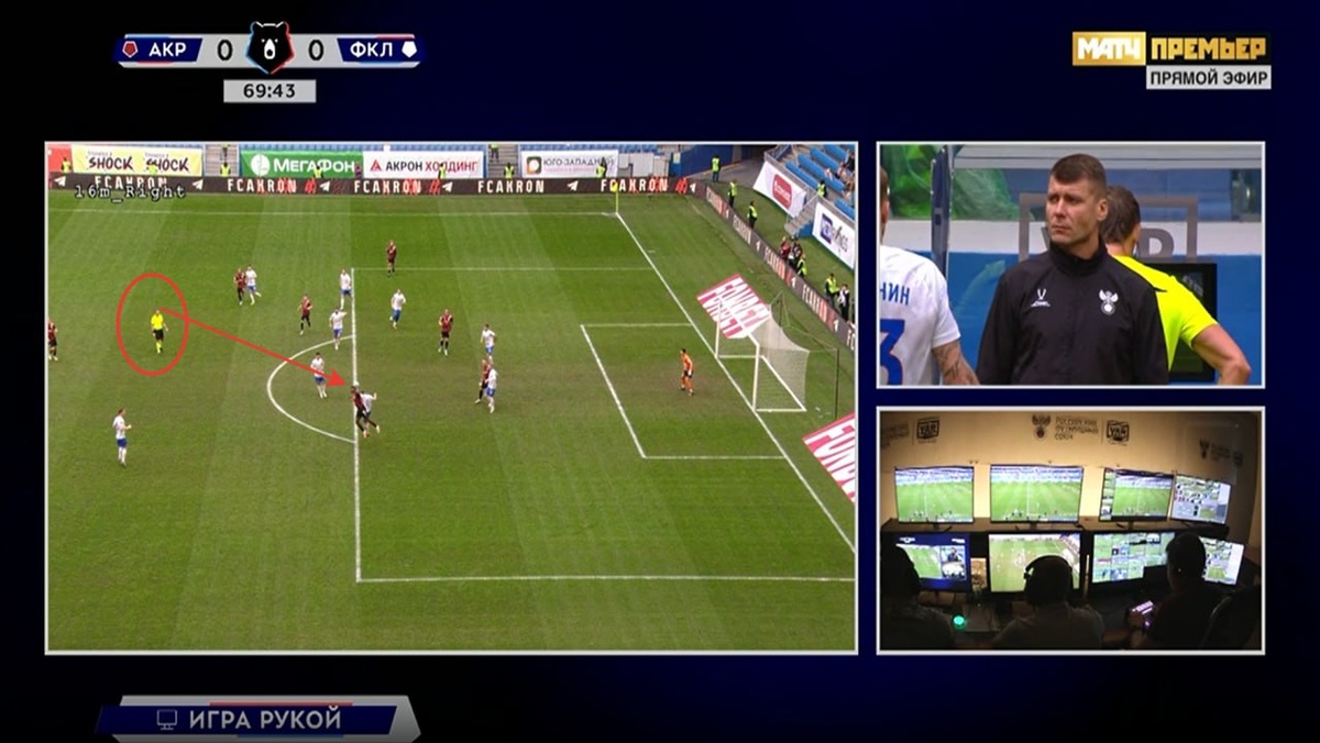 Арбитр, занимая открытую позицию не фиксирует нарушение правил с стороны игрока №13 команды Факел и не назначает хотя ю