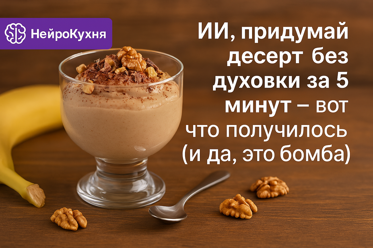 💬 «Придумай красивый десерт без духовки, за 5 минут, из простых продуктов. Чтобы был эффект “вау”, но всё просто.» ИИ не подвёл.